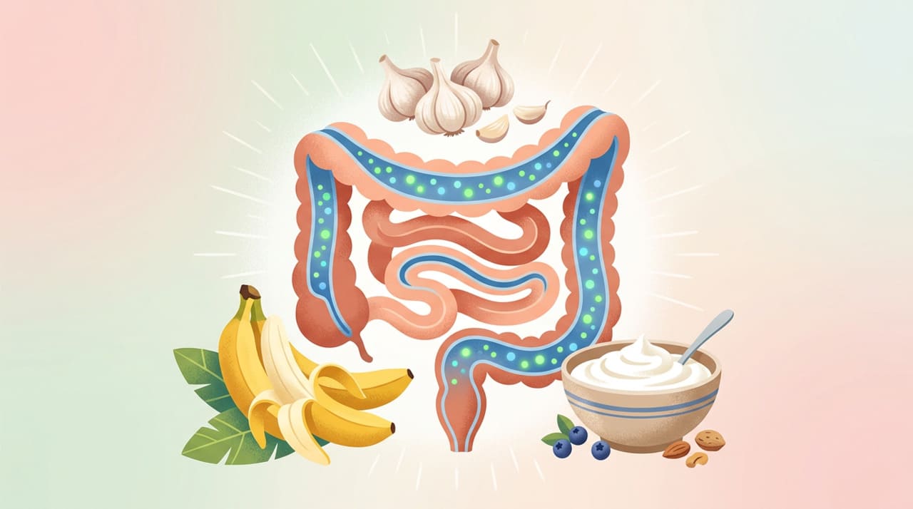 Alimentos como aveia, ovos, inhame, alho e banana apoiam a saúde intestinal.