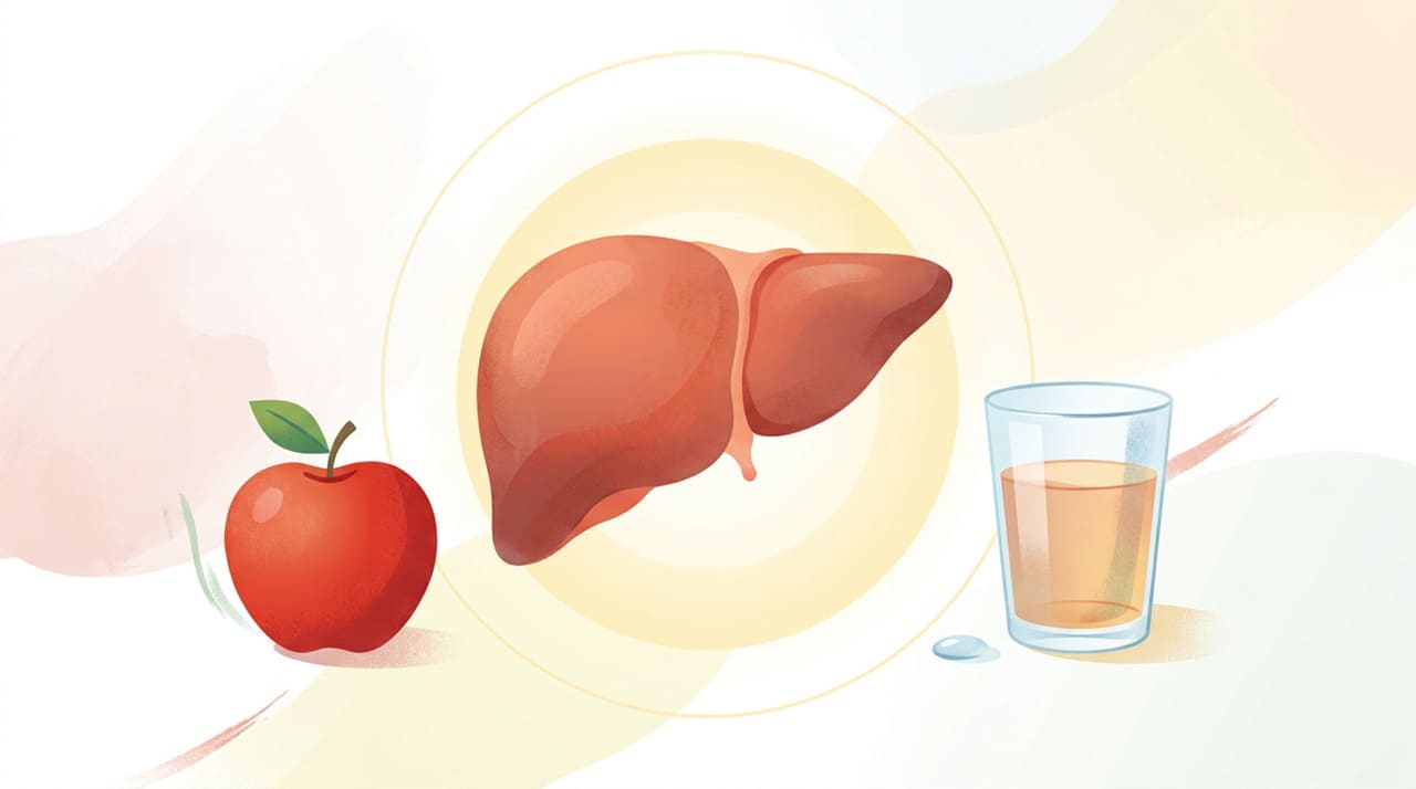 Bebida com vinagre de maçã em cena que remete a uso caseiro com cautela para saúde hepática.