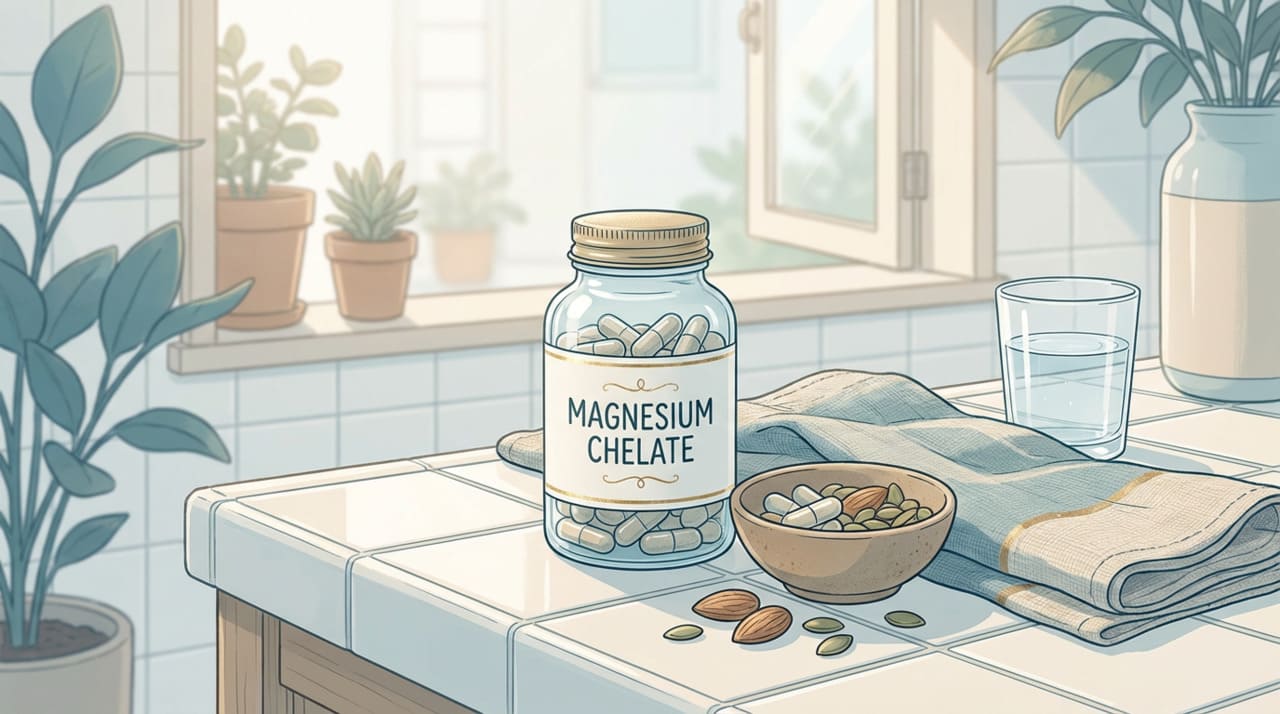 No formato quelato, o magnésio é ligado a um aminoácido ou outro composto orgânico. Na prática, isso costuma ser usado para melhorar a tolerância digestiva e a absorção, mas a evidência não mostra de forma firme que o magnésio quelato seja superior especificamente para articulações em comparação com todas as outras formas.