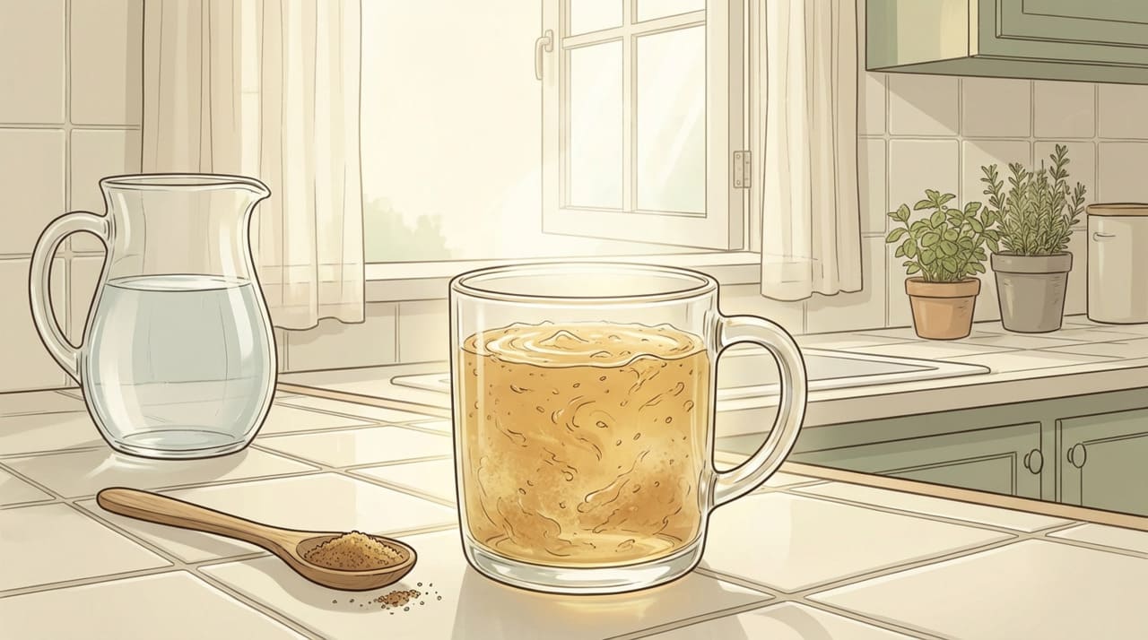 Psyllium preparado com água em uma rotina simples de apoio ao funcionamento intestinal.
