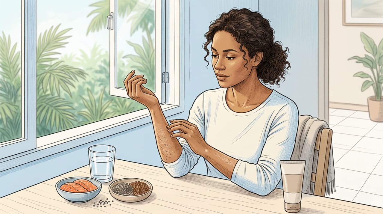 A pele seca, descamativa e com coceira pode ter origens bem distintas: falta de ômega-3 na alimentação ou simplesmente baixa ingestão de água. Embora os sinais iniciais se pareçam, cada causa produz padrões específicos no corpo e exige abordagens diferentes. Saber identificar essas diferenças ajuda a tratar o problema de forma correta e evita o uso indiscriminado de suplementos ou cremes sem resultado duradouro.
