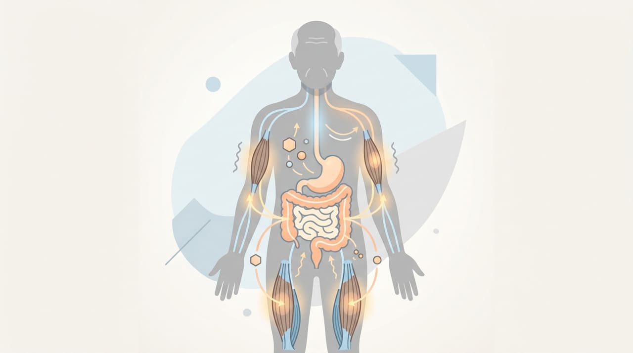 Essa ligação aparece na revisão Age-related sarcopenia and altered gut microbiota: A systematic review, publicada na revista Microbial Pathogenesis. Segundo o estudo, a sarcopenia relacionada ao envelhecimento está ligada a alterações da microbiota intestinal, com impacto em vias importantes do eixo intestino-músculo. Isso ajuda a explicar por que tratar o intestino pode fazer parte da estratégia para preservar força e estado nutricional após os 60 anos.