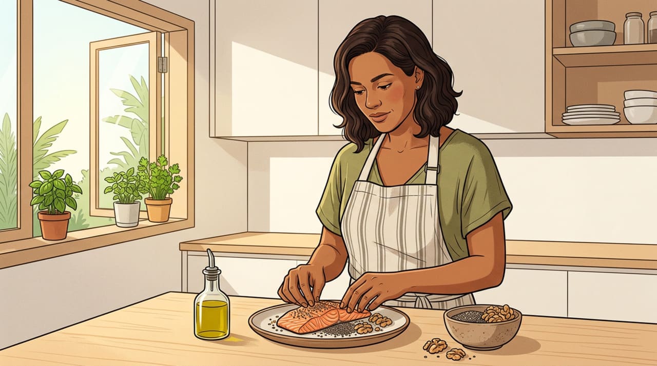 A forma mais eficaz de manter bons níveis do nutriente é por meio da alimentação. Peixes gordurosos oferecem EPA e DHA prontos para uso, enquanto fontes vegetais fornecem ALA, que o corpo converte em pequenas quantidades.
