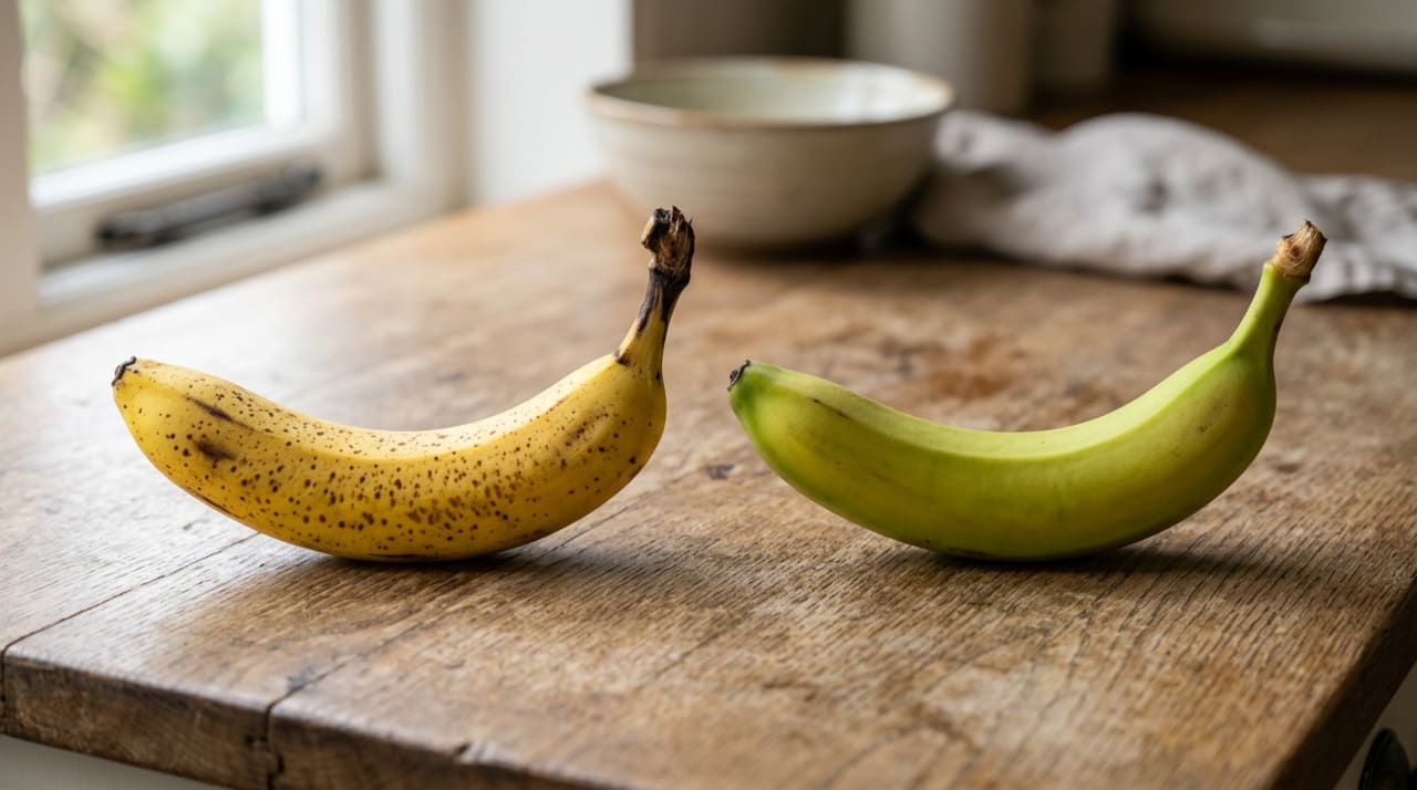 O grau de maturação da banana altera a proporção entre amido resistente e açúcares livres, impactando diretamente o índice glicêmico. Quanto mais madura, mais rápido o açúcar é absorvido, elevando a glicose no sangue com maior velocidade.
