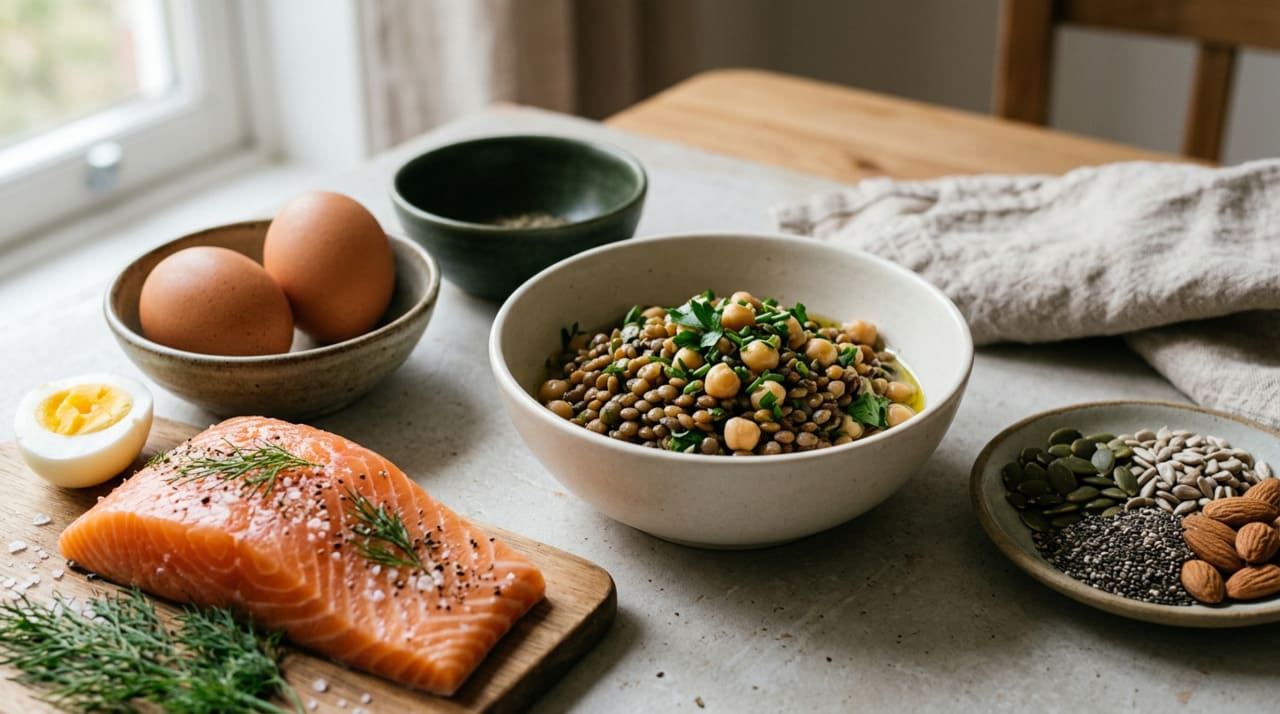 Distribuir a proteína ao longo do dia é tão importante quanto atingir a quantidade total, porque o corpo aproveita melhor porções equilibradas em cada refeição. Incluir fontes animais e vegetais ajuda a garantir todos os aminoácidos essenciais e mantém a alimentação variada. Boas fontes incluem ovos, peixes, carnes magras, laticínios, leguminosas como feijão, lentilha e grão-de-bico, além de tofu e sementes.