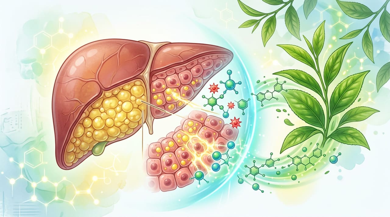 Um dos trabalhos mais citados nessa área é o estudo Green tea with high-density catechins improves liver function and fat infiltration in non-alcoholic fatty liver disease patients, publicado na World Journal of Gastroenterology. Segundo esse ensaio clínico, o consumo de chá verde com alta densidade de catequinas esteve associado a melhora de parâmetros ligados à função hepática e ao acúmulo de gordura no fígado em pacientes com esteatose.