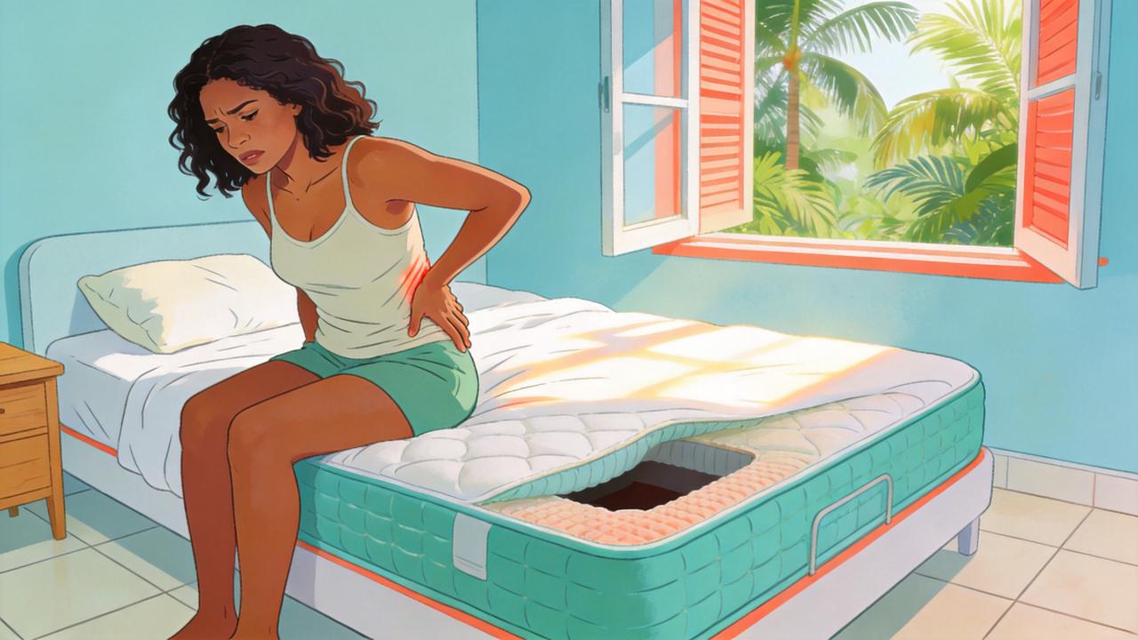 O colchão costuma entrar na lista de suspeitos quando a dor aparece mais de manhã do que ao longo do dia. Outro indício é sentir alívio ao dormir em outro lugar, como hotel ou casa de familiares. Afundamento na região do quadril, perda de suporte nas bordas e ruídos internos também indicam desgaste estrutural.
