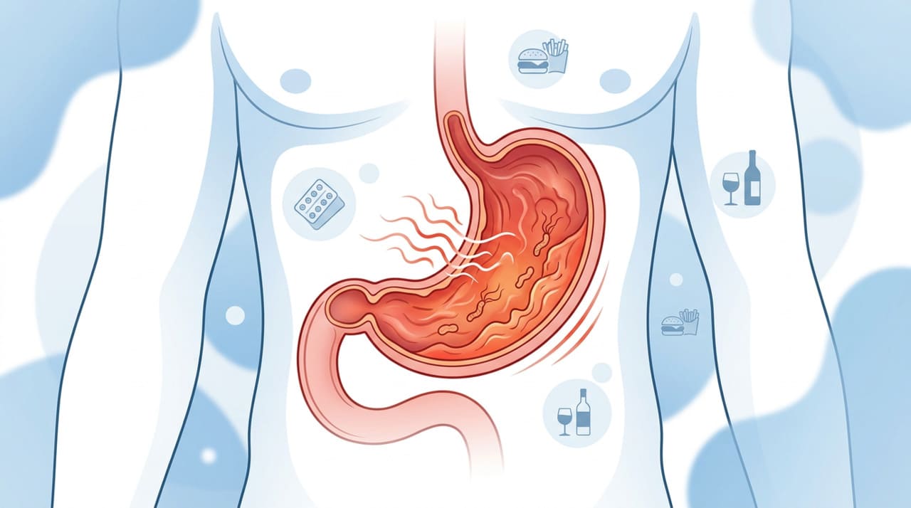 A inflamação do estômago costuma ser provocada por uma combinação de fatores que agridem ou enfraquecem a mucosa gástrica. Alguns desencadeantes são episódicos, enquanto outros estão diretamente ligados ao estilo de vida e podem ser corrigidos com mudanças de hábito.