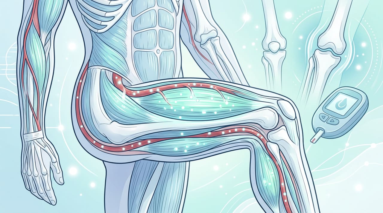 O músculo esquelético é o principal tecido responsável por captar glicose do sangue após as refeições. Quanto maior e mais ativa a musculatura, melhor é a sensibilidade à insulina e mais estáveis ficam os níveis de açúcar, um fator decisivo na prevenção do diabetes tipo 2.