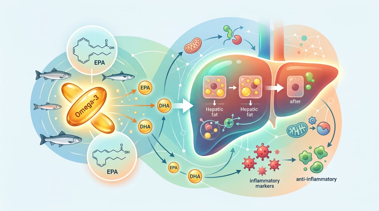 Uma revisão muito citada é Systematic review and meta-analysis of controlled intervention studies on the effectiveness of long-chain omega-3 fatty acids in patients with non-alcoholic fatty liver disease, publicada na Nutrition Reviews. Segundo essa revisão sistemática, os ômega-3 de cadeia longa mostraram benefício sobretudo na redução da gordura no fígado, embora os efeitos sobre inflamação e outros desfechos não sejam iguais em todos os estudos.
