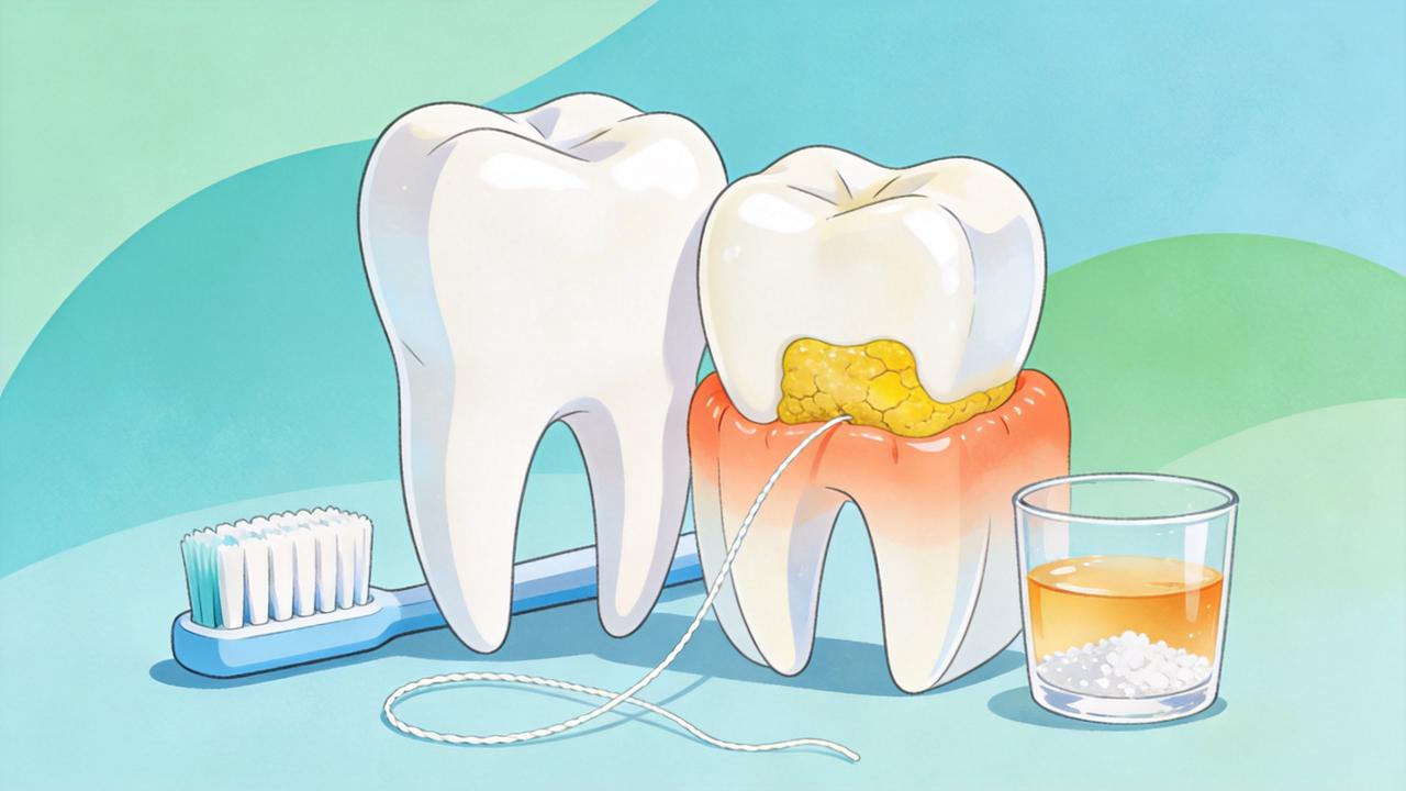 Se a ideia é apoiar a higiene sem ferir a boca, a opção mais segura é um enxágue com água morna e sal, usado por curto período quando há gengiva sensível. Ele não dissolve o tártaro, mas pode reduzir desconforto e deixar a limpeza diária mais tolerável. Outra medida útil é reforçar a técnica de escovação e o uso do fio dental, porque o alvo real é a placa bacteriana antes que ela endureça.