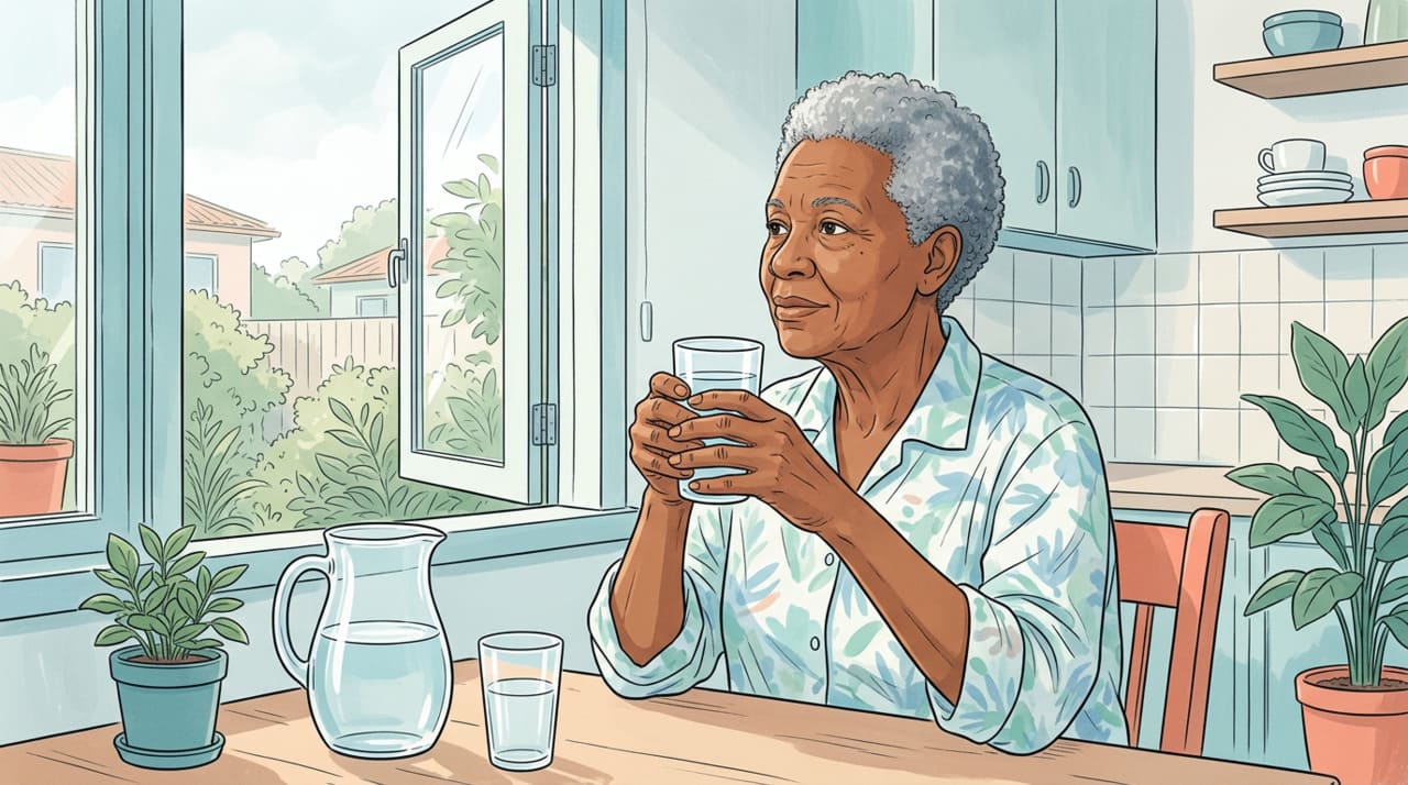 Nessa faixa etária, a hidratação deve acontecer por hábito, não por sede. Familiares e cuidadores têm papel importante em lembrar e oferecer líquidos com regularidade, prevenindo quadros de confusão mental, quedas e internações associadas à perda hídrica.