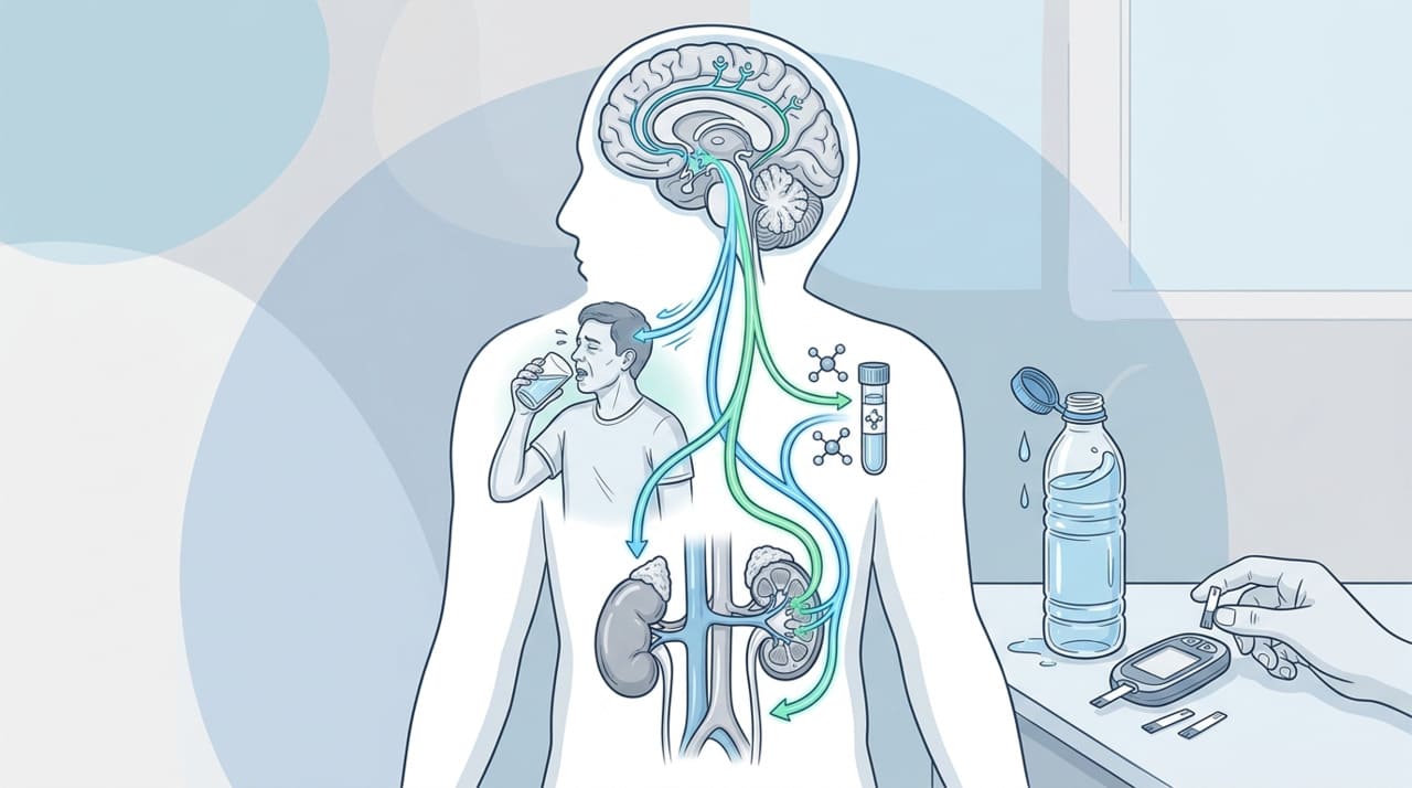 A polidipsia pode ter origem em diferentes sistemas do corpo, mas costuma estar ligada a alterações no metabolismo da glicose, na função renal ou na produção do hormônio antidiurético. Identificar a causa exige avaliação clínica e exames específicos.