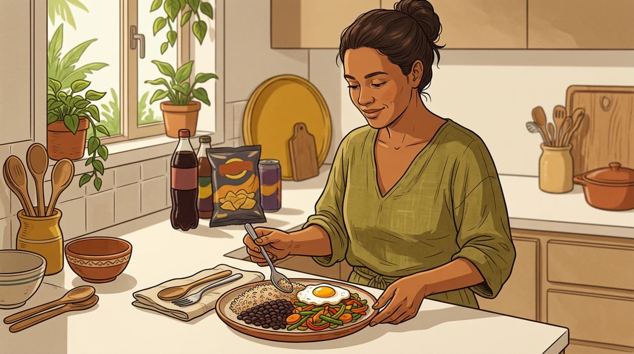 O melhor caminho não é buscar perfeição, mas trocar parte dos ultraprocessados por comida de verdade. Frutas, legumes, feijão, ovos, aveia, iogurte natural, castanhas e refeições simples feitas em casa ajudam mais o intestino e costumam sustentar melhor a saciedade.