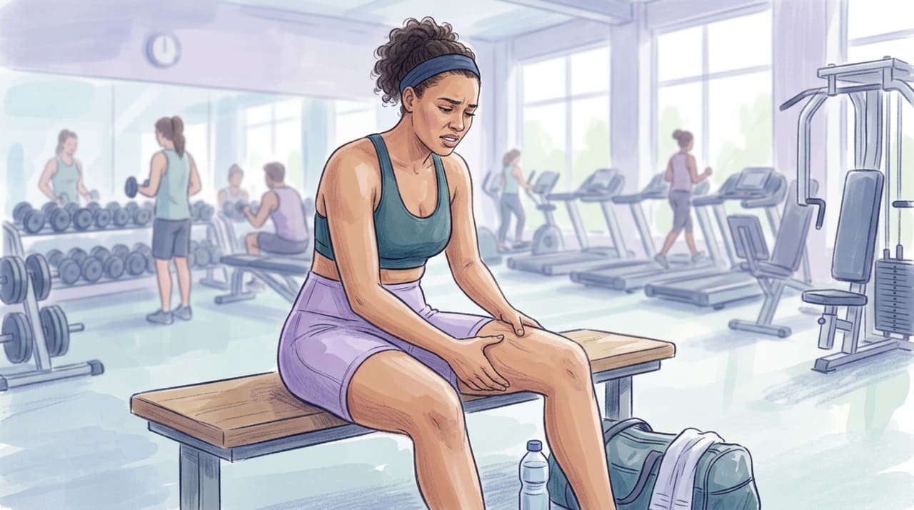 O desconforto se concentra nos músculos trabalhados, com sensibilidade ao toque, rigidez e perda temporária de força. A causa são microlesões nas fibras musculares e uma resposta inflamatória local, parte natural do processo de adaptação e fortalecimento.