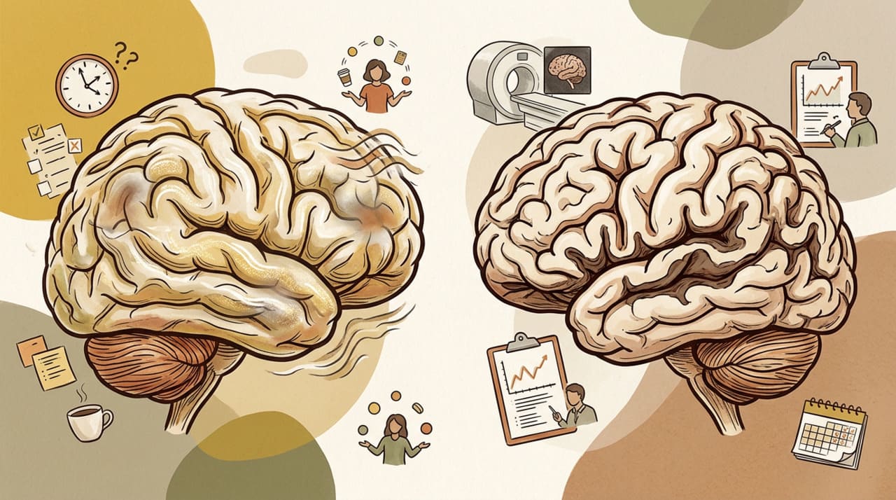 A perda de memória causada pelo estresse crônico costuma ser flutuante, reversível e relacionada a esquecimentos do cotidiano, como compromissos, nomes e tarefas recentes. Já o declínio cognitivo apresenta padrão progressivo, afeta funções específicas como linguagem e orientação espacial e tende a piorar mesmo em momentos de descanso. Diferenciar os dois quadros depende de observar a evolução dos sintomas, o impacto na rotina e o desempenho em avaliações neuropsicológicas, que ajudam a indicar quando a alteração merece investigação mais aprofundada.
