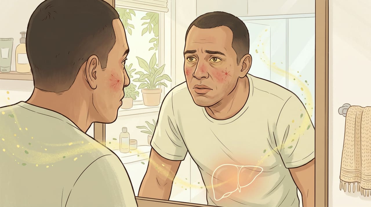 O fígado em sofrimento crônico costuma deixar pistas visíveis no rosto e na pele antes mesmo de a cirrose ser diagnosticada. Alterações na cor, vasinhos em formato de aranha, vermelhidão e coceira persistente são alguns dos sinais que podem indicar que algo não vai bem. Reconhecer essas mudanças com atenção ajuda a buscar avaliação médica precoce e pode mudar o desfecho da doença, já que muitas vezes a pele funciona como um espelho da função hepática.
