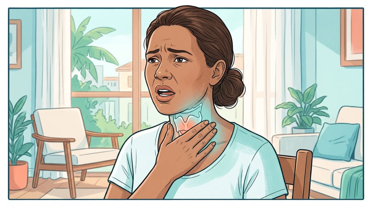 Entre os sintomas que aumentam o nível de alerta estão dor ao engolir, sensação de bolo na garganta, tosse seca persistente, falta de ar, perda de peso sem motivo aparente, presença de sangue na saliva e nódulos palpáveis no pescoço. Esses sinais reforçam a necessidade de buscar um otorrinolaringologista para avaliação detalhada.