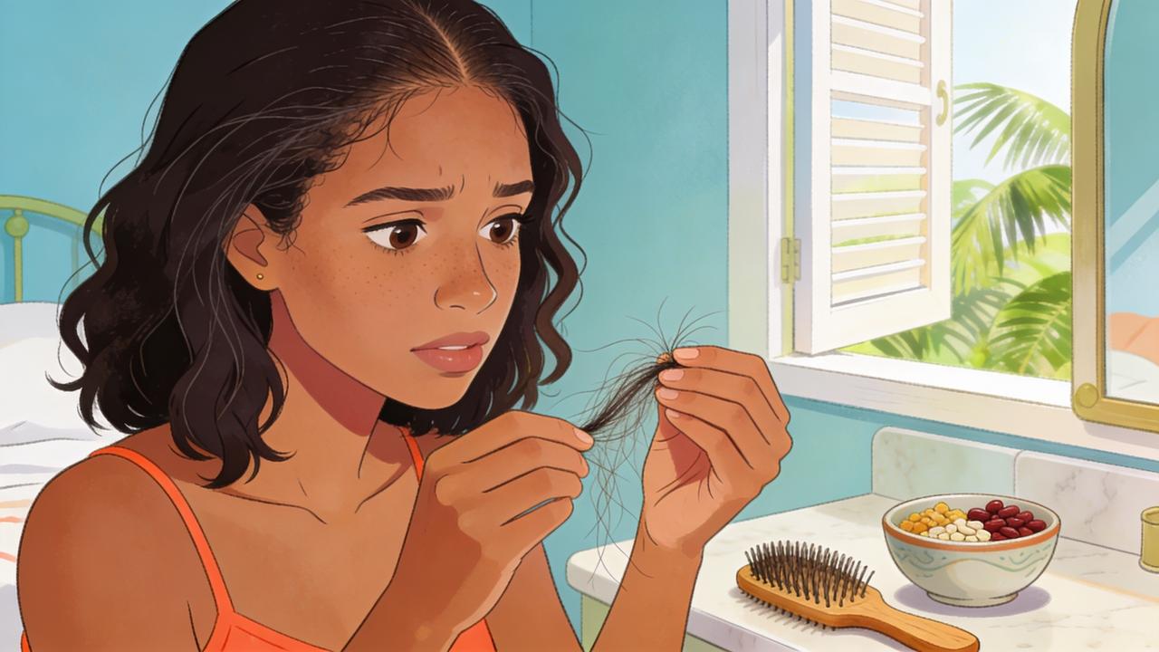 Queda de cabelo pode estar ligada à ferritina e zinco baixos.