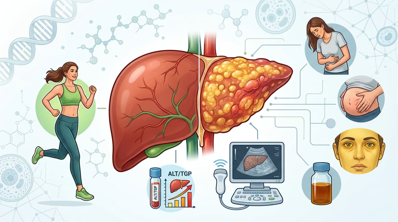 Isso explica por que fatores como obesidade, diabetes tipo 2, uso frequente de álcool, colesterol alto e certos medicamentos aumentam a importância de investigar o fígado mesmo sem dor ou icterícia.